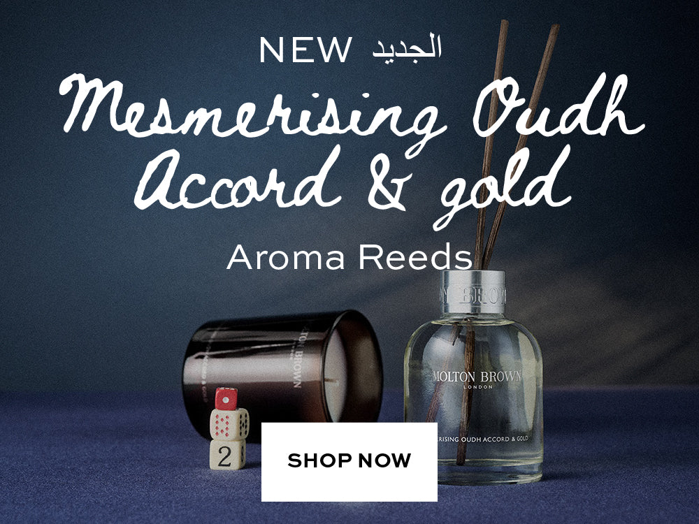 Discover the new Mesmerising Oudh Accord & Gold Aroma Reeds. A rich blend of smoky oudh, myrrh, and warm cinnamon to elevate your space with lasting elegance.
